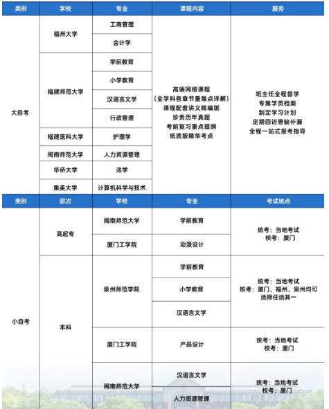 2026福建自考可报考专业推荐